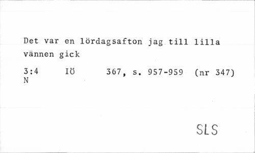 //// Det var en lördagsafton jag till lilla vännen gick //// 3:4 Iö 367, s. 957-959 (nr 347) //// N //// SLS ////