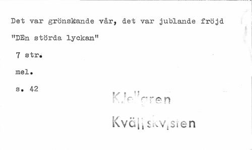 //// Det var grönskande vår, det var jublande fröjd "DEn störda lyckan" 7 str. mel. //// 8' 42 s " //// i\.rr rren Kväiis^vÉsien ////