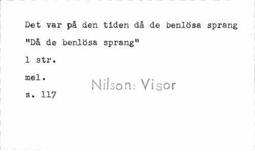 //// Det var på den tiden då de benlösa sprang "Då de benlösa sprang" 1 str. //// mel# Nilson: Visor //// s. 117 ////