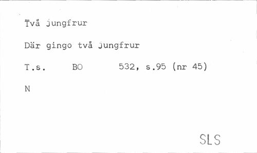 //// Två jungfrur //// Där gingo två jungfrur //// T.s. BO 532, s.95 (nr 45) //// N //// SLS ////