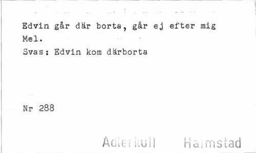 //// Edvin går där borta, går ej efter mig Mel. //// Svas: Edvin kora därborta Nr 288 //// ÅGit i uuil Hairnscad ////