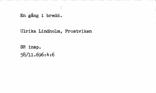 //// En gång i bredd. //// Ulrika Lindholm, Frostviken //// SR insp. 58/11.696:4:6 ////