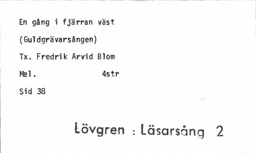 //// En gång i fjärran väst (Guldgrävarsången) Tx. Fredrik Arvid Blom Mel. 4str //// Sid 38 //// Lövgren : läsarsång 2 ////