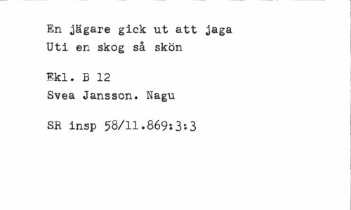 //// En jägare gick ut att jaga Uti en skog så skön //// Ekl. B 12 //// Svea Jansson. Nagu SR insp 58/11.869:3:3 ////
