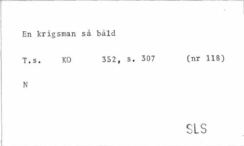 //// En krigsman sä bäld //// T.s. KO 352, s. 307 (nr 118) //// N //// SLS ////