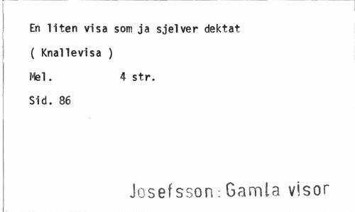 //// En liten visa som ja sjelver dektat //// I //// ( Knallevisa ) Mel. 4 str. //// Sid. 86 //// Josefsson:Gamla visor ////