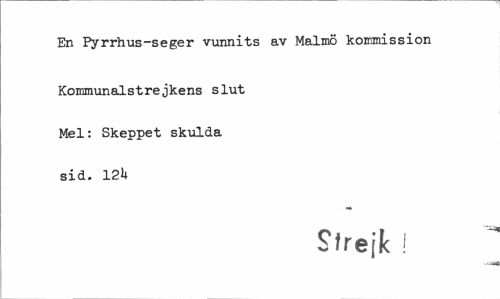 //// En Pyrrhus-seger vunnits av Malmö kommission //// Kommunalstrejkens slut Mel: Skeppet skulda sid. 121+ //// Sfrejk ! ////
