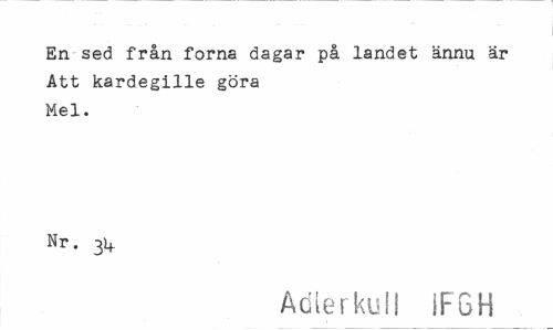 //// En sed från forna dagar på landet ännu är //// Att kardegille göra //// Mel. //// Nr. 31,. //// Adlerkull iFGH ////
