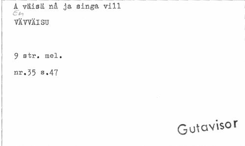 //// Å väisä nå jä smgå vill VÄYVÄISU //// 9 str, mel. nr.35 s.47 //// Go\av\sor ////