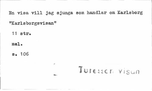 //// En visa vill jag sjunga som handlar om Karlsborg "Karlsborgsvisan" 11 str. mel. s, 106 //// Turenen visun ////