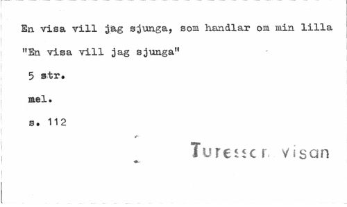 //// En visa vill Jag sjunga, som handlar om min lilla "En visa vill jag sjunga" 5 str. mel. s. 112 //// Tu re ii c r visan ////