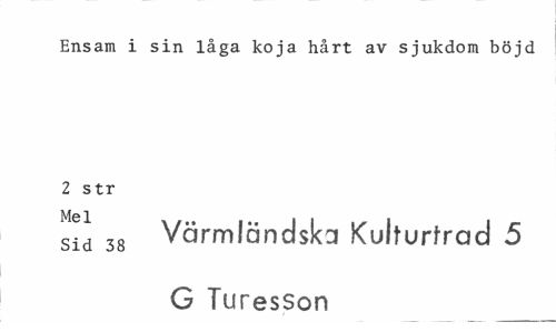 //// Ensam i sin låga koja hårt av sjukdom böjd 2 str //// sid 38 Värmländska Kulturfrad 5 G Turesson ////