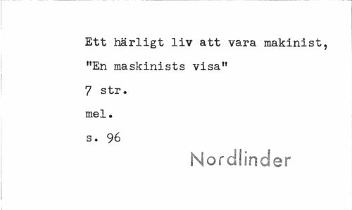 //// Ett härligt liv att vara makinist, "En maskinists visa" 7 str. mel. s. 96 //// Nordlinder ////
