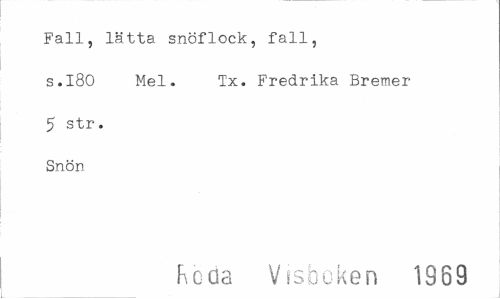 //// Fall, lätta snöflock, fall, //// s.180 Mel. Tx. Fredrika Bremer //// 5 str. //// Snön //// Rcöa Visboken 1969 ////