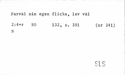 //// Farväl min egen flicka, lev val //// 2:4+r BO 532, s. 391 (nr 241) //// N //// SIS ////