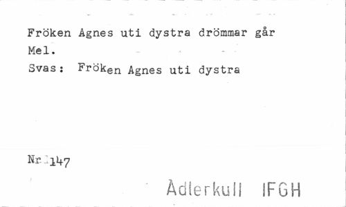 //// Fröken Ågnes uti dystra drömmar går Mel. //// Svas: Fröken Ågnes uti dystra //// Nr.: //// Adlerkull IF6H ////