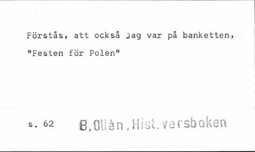 //// Förstås, att också jag var på banketten, "Festen för Polen" //// s- 62 B.Qllén.Hist. versboken ////