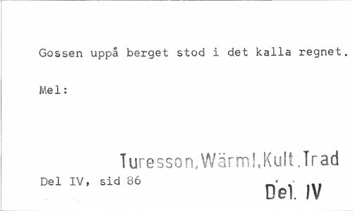 //// Gossen uppå berget stod i det kalla regnet. Mel: //// Turesson. Wärm I, Kult. Träd //// Del IV, sid 86 - - //// Del. IV ////