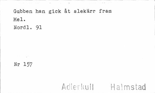 //// Gubben han gick åt alekärr fram Mel. //// Nordl. 91 Nr 157 //// Adierkull Halmstad ////