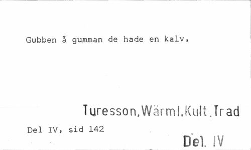 //// Gubben å gumman de hade en kalv, //// Turesson, Wärml.Kult.Tr ad //// Del IV, sid 142 //// Del. i V ////