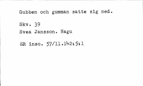 //// Gubben och gumman satte sig ned. Skv. 39 //// Svea Jansson. Nagu SR inso. 57/11.1^2:5*.! ////