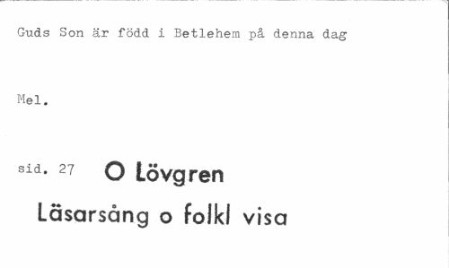 //// Guds Son är född i Betlehem på denna dag Mel. //// sid. 27 o Lövgren Läsarsång o folk! visa ////