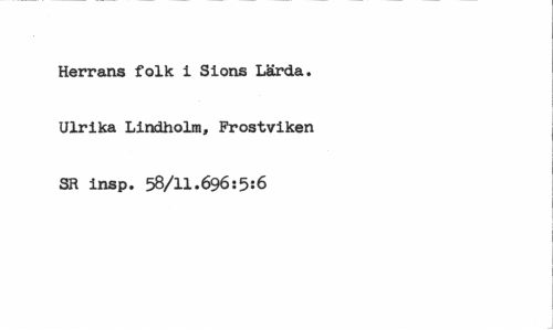 //// Herrans folk i Sions Lärda. Ulrika Lindholm, Frostviken SR insp. 58/11.696j5:6 ////