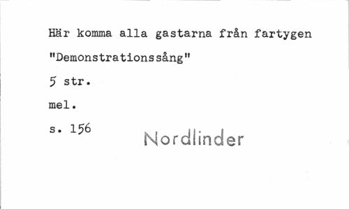//// Här komma alla gastarna från fartygen "Demonstrations sång" 5 str. mel. //// 156 Nordiirider ////