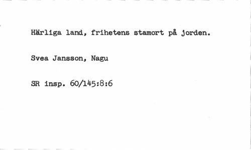 //// Härliga land, frihetens stamort på jorden. Svea Jansson, Nagu SR insp. 60/145:8:6 ////
