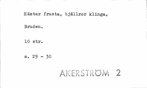 //// Hästar frusta, bjällror klinga, Bruden. //// 10 str. //// s. 29 - 30 //// ÅKERSTRÖM 2 ////