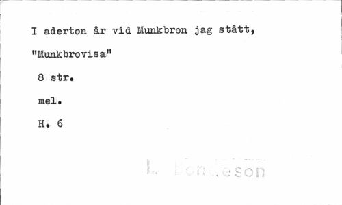 //// I aderton år vid Munkbron jag stått, "Munkbrovisa" 8 str. mel. H. 6 //// i< :nn ////