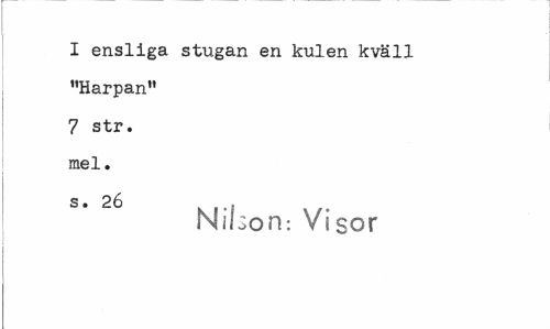 //// I ensliga stugan en kulen kväll "Harpan" 7 str. mel. //// Nilson: Visor ////
