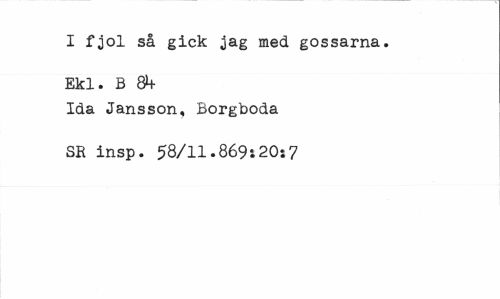 //// I fjol så gick jag med gossarna. Ekl. B &+ //// Ida Jansson, Borgboda SR insp. 58/11.869»20j7 ////