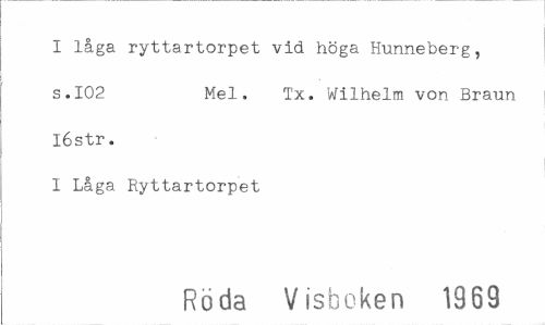 //// I låga ryttartorpet vid höga Hunneberg, s.I02 Mel. Tx. Wilhelm von Braun Iéstr. //// I Låga Ryttartorpet //// Röda Visboken 1969 ////