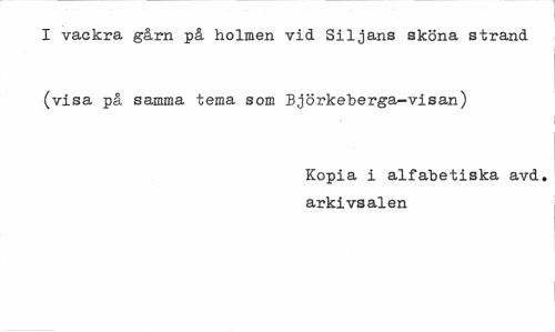//// I vackra gårn på holmen vid Siljans sköna strand (visa på samma tema som Björkeberga-visan) //// Kopia i alfabetiska avd. arkivsalen ////