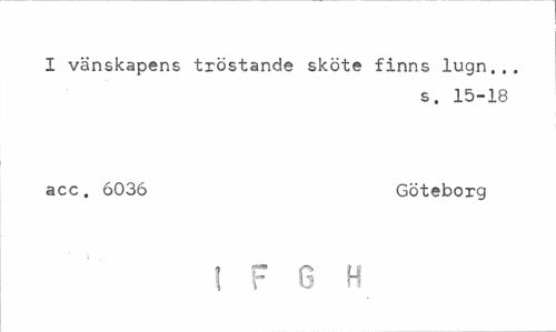 //// I vänskapens tröstande sköte finns lugn... //// s. 15-18 //// acc. 6036 Göteborg //// 1 F G H ////