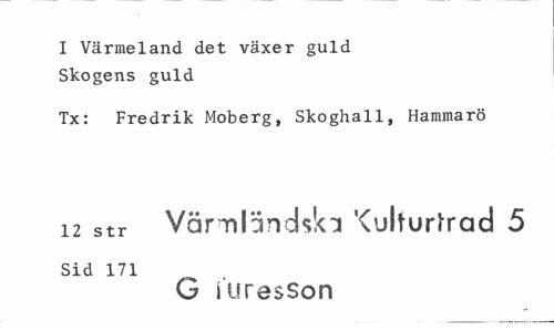 //// I Värmeland det växer guld Skogens guld //// Tx: Fredrik Moberg, Skoghall, Hammarö //// 12 str Värnrilcindski \ulturfrrad 5 //// Sid 171 //// G iuresSon ////