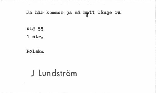 //// Ja här kommer ja mä långe ra //// sid 55 1 str. //// Polska //// j Lundström ////