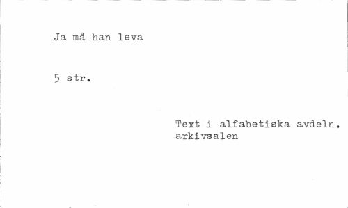 //// Ja må han leva 5 str. //// Text i alfabetiska avdeln. arkivsalen ////
