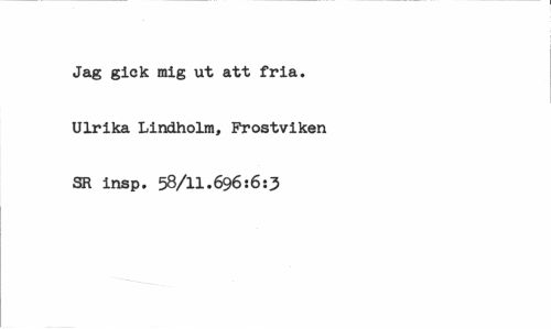 //// Jag gick mig ut att fria. Ulrika Lindholm, Prostviken SR insp. 58/11.696:60 ////