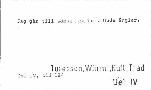 //// Jag går till sängs med tolv Guds änglar, //// Turesson, Wärml, Kult. Tr ad //// Del IV, sid 184 //// Del. IV ////