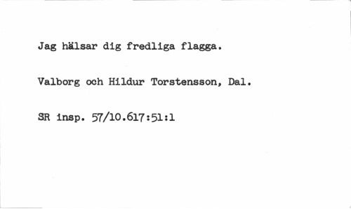 //// Jag hälsar dig fredliga flagga. Valborg och Hildur Torstensson, Dal. SR insp. 57/10.617:51:1 ////