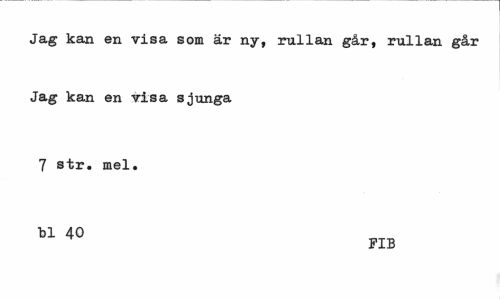 //// Jag kan en visa som är ny, rullan går, rullan går Jag kan en visa sjunga //// 7 str. mel. //// 40 //// FIB ////