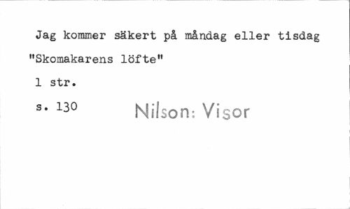 //// Jag kommer säkert på måndag eller tisdag "Skomakarens löfte" 1 str. //// s. 130 Nilson-. Visor ////