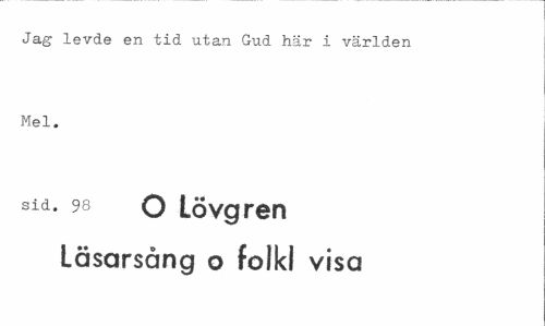 //// Jag levde en tid utan Gud här i världen Mel. //// sid. 98 O Lövgren Läsarsång o folkl visa ////