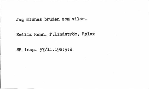 //// Jag minnes bruden som vilar. Emilia Rehn. f.Lindström, Rylax SR insp. 57/11.192:9:2 ////