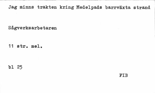 //// Jag minns trakten kring Medelpads barrväxta strand //// Sågverksarbetaren 11 str. mel. //// bl 25 //// FIB ////