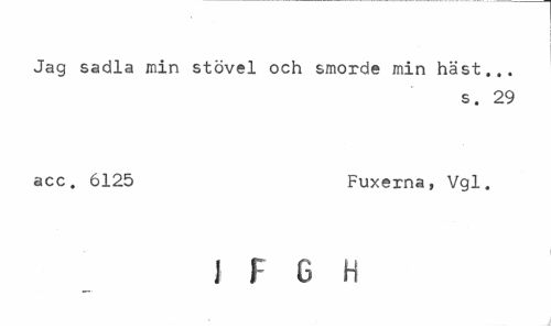 //// Jag sadla min stövel och smorde min häst... //// s. 29 //// acc. 6125 Fuxerna, Vgl. //// I F 0 H ////