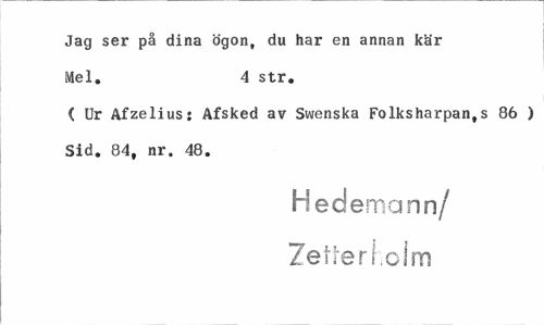 //// Jag ser på dina ögon, du har en annan kär Mel. 4 str. //// ( Ur Afzelius: Afsked av Swenska Folksharpan,s 86 ) Sid. 84, nr. 48. //// H ederna nn/ Zetferloim ////