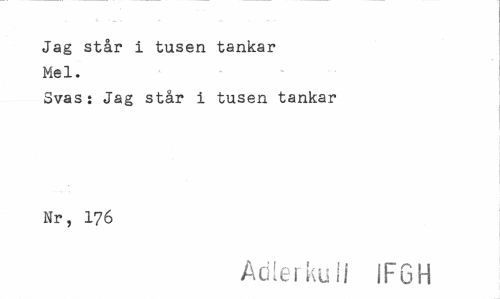 //// Jag står i tusen tankar Mel. //// Svas: Jag står i tusen tankar Nr, 176 //// Adlerkuli JFGH ////